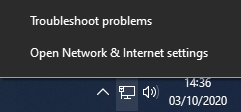 - Right-click on network connections section located on the right-hand side of the toolbar and select Open Network & Internet Settings