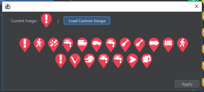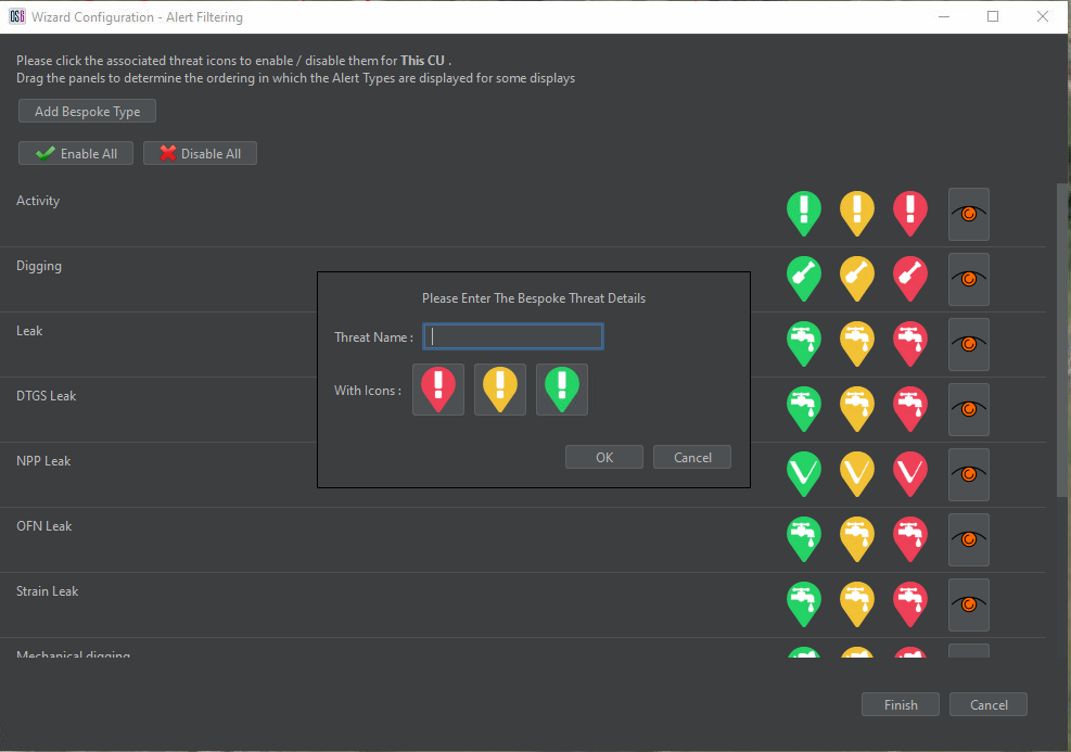 The operator can also create bespoke alert types by selecting Add Bespoke Type. This enables the detectors to be assigned any threat name desired by the client. The Add Bespoke Type window allows input of a custom threat name (Figure 5). By selecting one of the threat icons, the threat icon selection window opens to allow the selection of the threat icon (Figure 6). Custom images can also be assigned to the alert by selecting Load Custom Image.