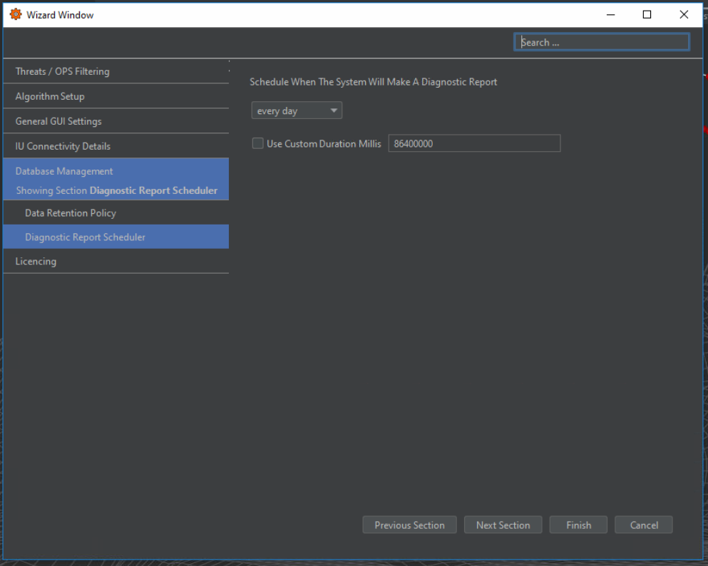 Diagnostic Reporting allows the user to create system diagnostic and health reports automatically. The user can specify how often automatic reports are to be created and the length of time they wish the generated reports to be stored within the database (Figure 20).