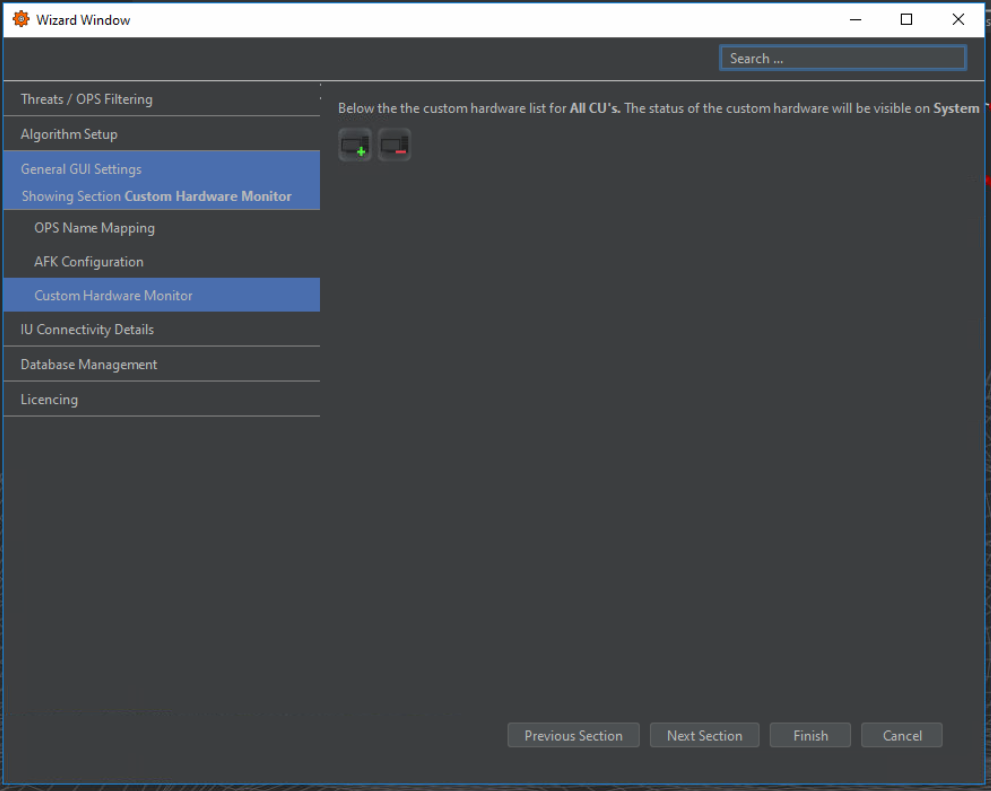 This tab allows the user to Monitor hardware with an IP address on the network. The system will constantly ping the associated IP of the hardware. These can be ECPSs, Managed Switches, etc. By adding these custom hardware items here, they will appear on the system health.