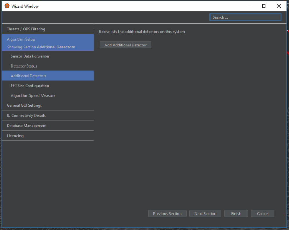 Additional detectors can be viewed and added to the system through the Additional Detectors tab, as shown in Figure 9. By selecting Add Additional Detector, an additional window will appear where details for the detector can be specified (Figure 10). Detectors must be based on an existing OS6 detection algorithm. The purpose of adding this is to duplicate detectors for different purposes. For instance, in some systems, it may be necessary to run two instances of the NPP detector to allow detection at different speeds.