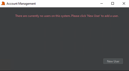 In the Account Management window (Figure 41), select New User and fill out the subsequent window with the user details according to the type of user being set up. There are three accounts/roles to choose from.