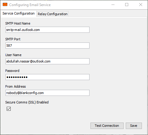 If the details are correct and there is a valid connection, a success result will be returned. The details can be saved which will automatically reload the agent with the newest details.