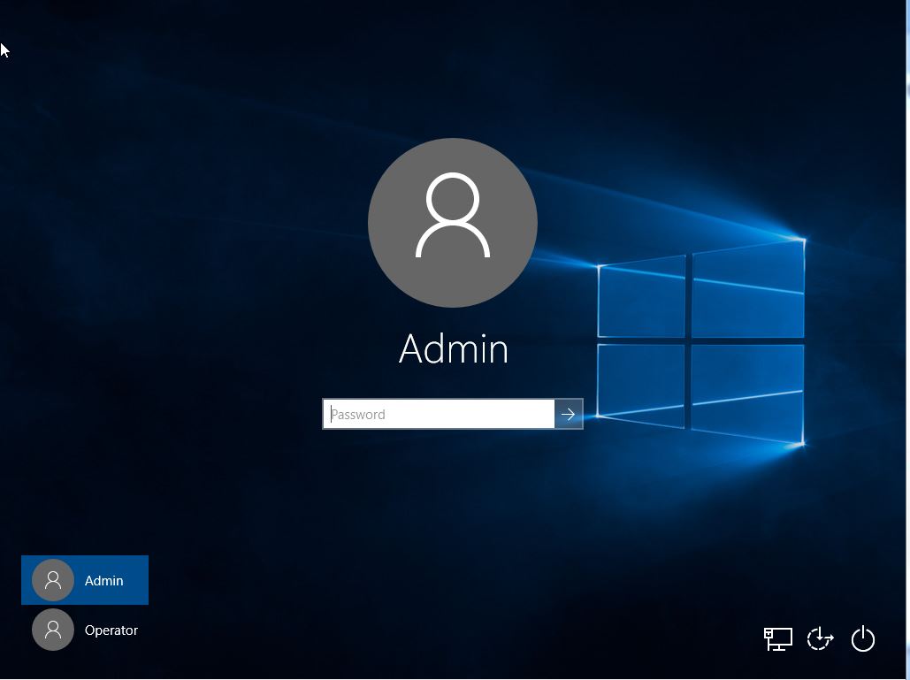 Once the CU is powered up, select the User account from the list of two Windows users. This will bring up the password field as shown in Figure 3. Type the password, then press “Enter” or click on the arrow to log in.