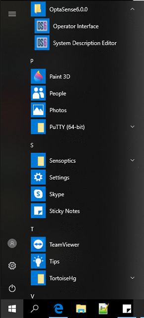 Figure 4: Starting OptaSense from the Windows Start menu.
