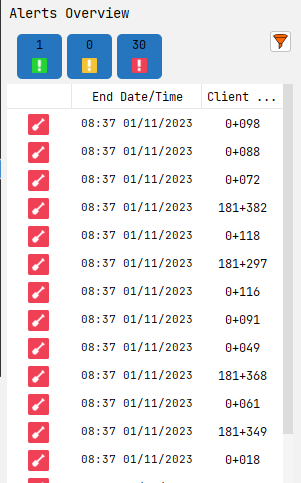 Displays alerts against what KPoint they were generated in and over what time period they occurred (in this example, over a day).
