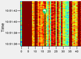 | Waterfall | A dynamic chart that represents live & historical data from the histogram. Location is represented along the x-axis; time is shown on the y-axis and amplitude of the signal is represented by varying colours. |