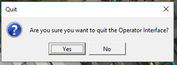 To exit the software, click the “X” at the top-right corner of the GUI window then click “Yes” when prompted. It is also possible to exit the GUI using the System option on the Main window. Exiting the GUI does not affect the operation of the system as the detection and classification of events is driven by the OptaSense software running on the PUs. The GUI is simply a visualisation and control tool of which there can be several running across the system. These various quitting methods are shown in Figure 7.