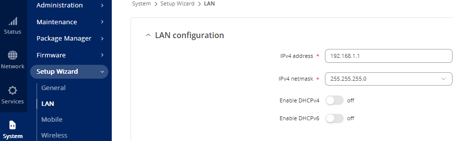 From System select Setup Wizard > General.