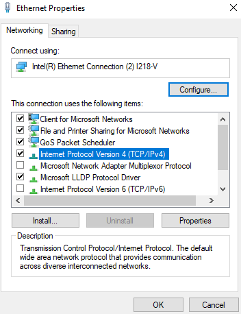 - Select Internet Protocol Version 4 (TCP /IPv4) and then select Properties as per Figure 21.