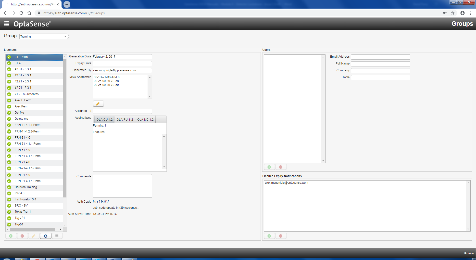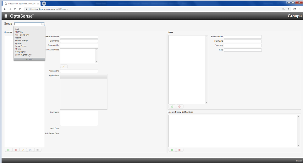 A software licence must have already been created. The generated access code links to the MAC address of the system that requires access. An access code generated using a different licence group will not work. The created licence can then be found and selected within the Groups drop-down window.