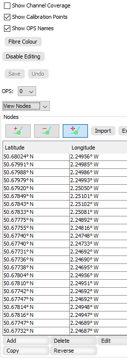 The fibre route details that are supplied by the customer need to separate per OPS and placed in a .csv file. This can be achieved via Microsoft Excel, two columns need to be populated, the left for the Latitude values and the right for the longitude values. Once one file has been created for each OPS this needs to be saved as CSV files.